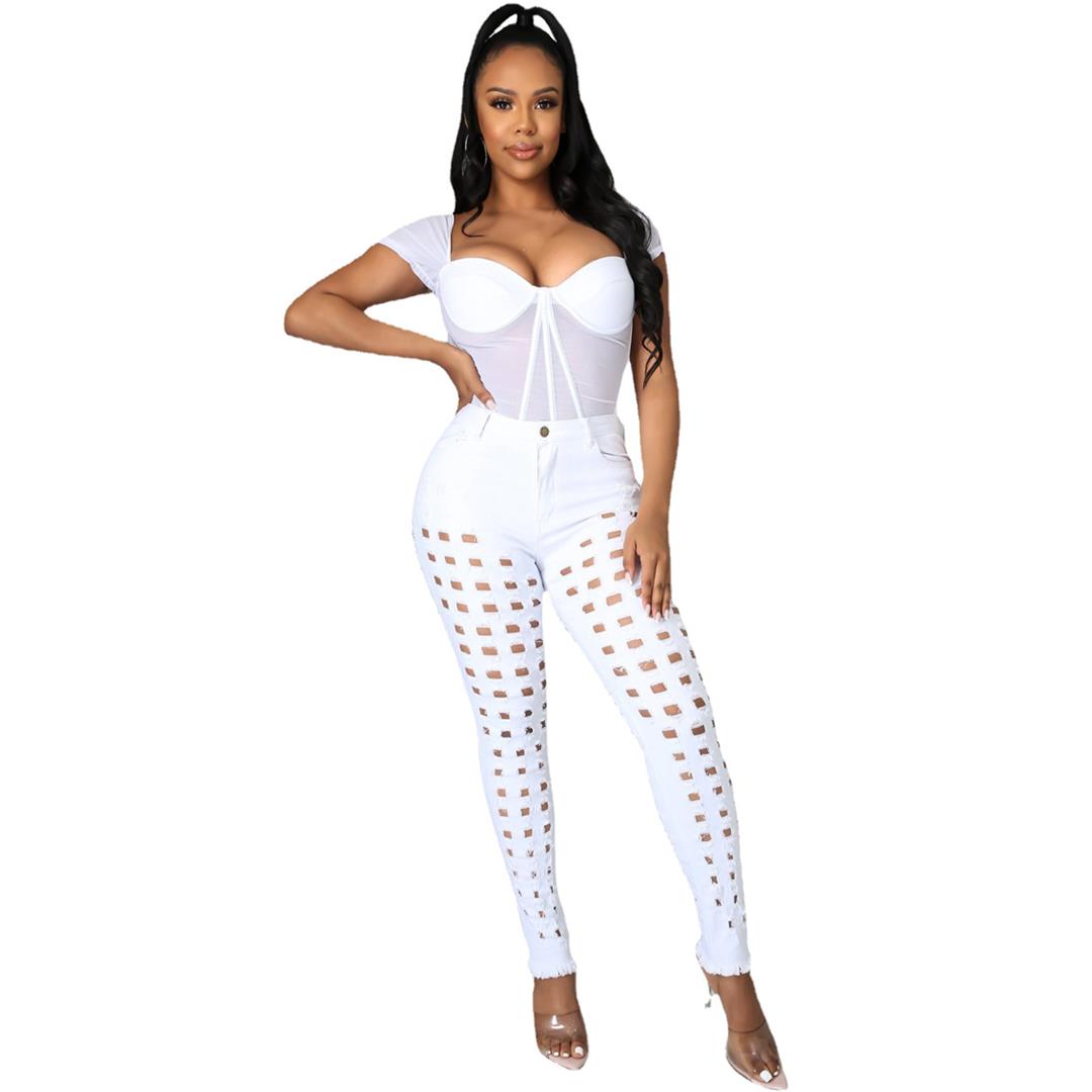 LightBlue Sexy Hollow-out Jeans Long Pants