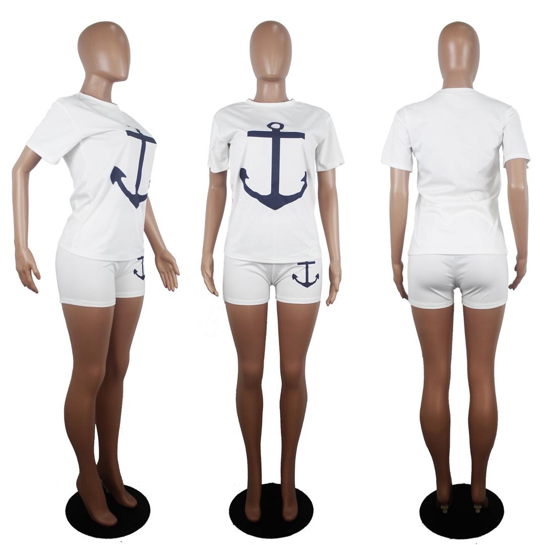 White Short Sleeve Printed Women Sexy Pant Sets