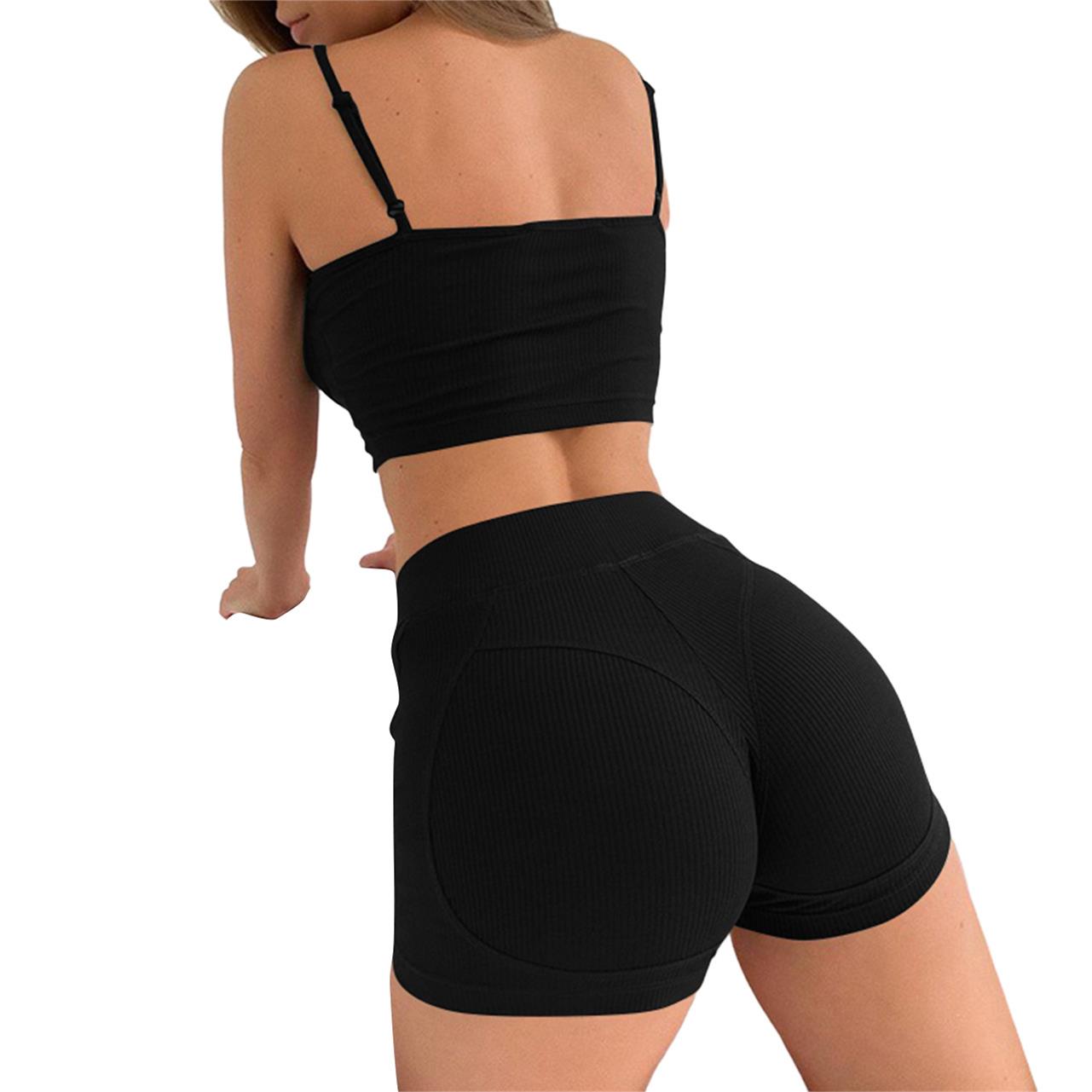 Black Halter Low-Cut V-Neck Cotton Sexy Short Sets