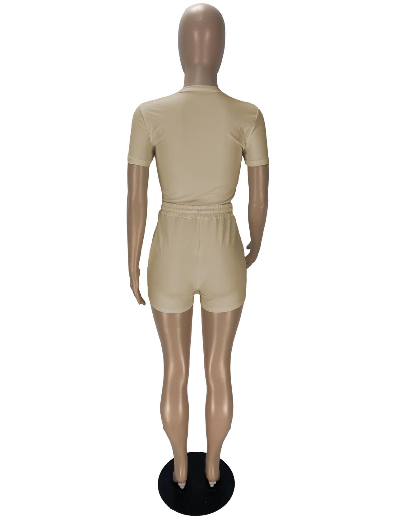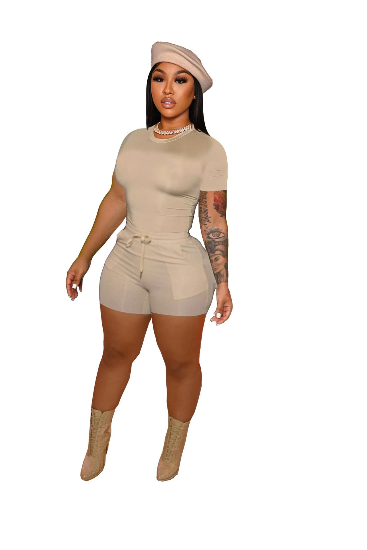 Khaki Round Neck Bodycon Women Short Sets