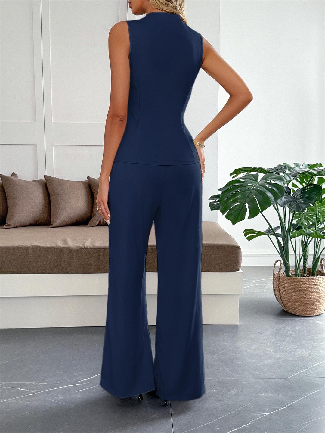 Royal Blue Sleeveless Vest Top Two Pieces Casual Simple Long Pant Sets Dress