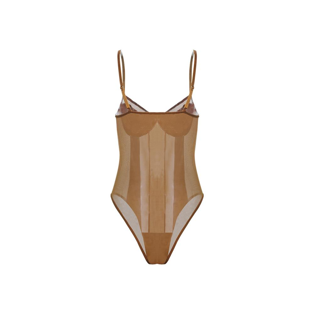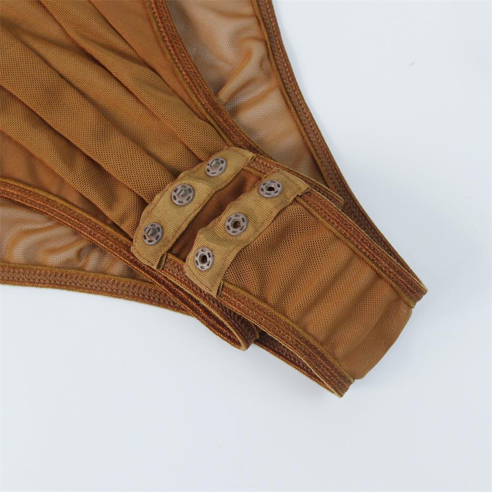 Brown Women's Straps Mesh See-through Sexy Underwear Club Tops Bodysuits