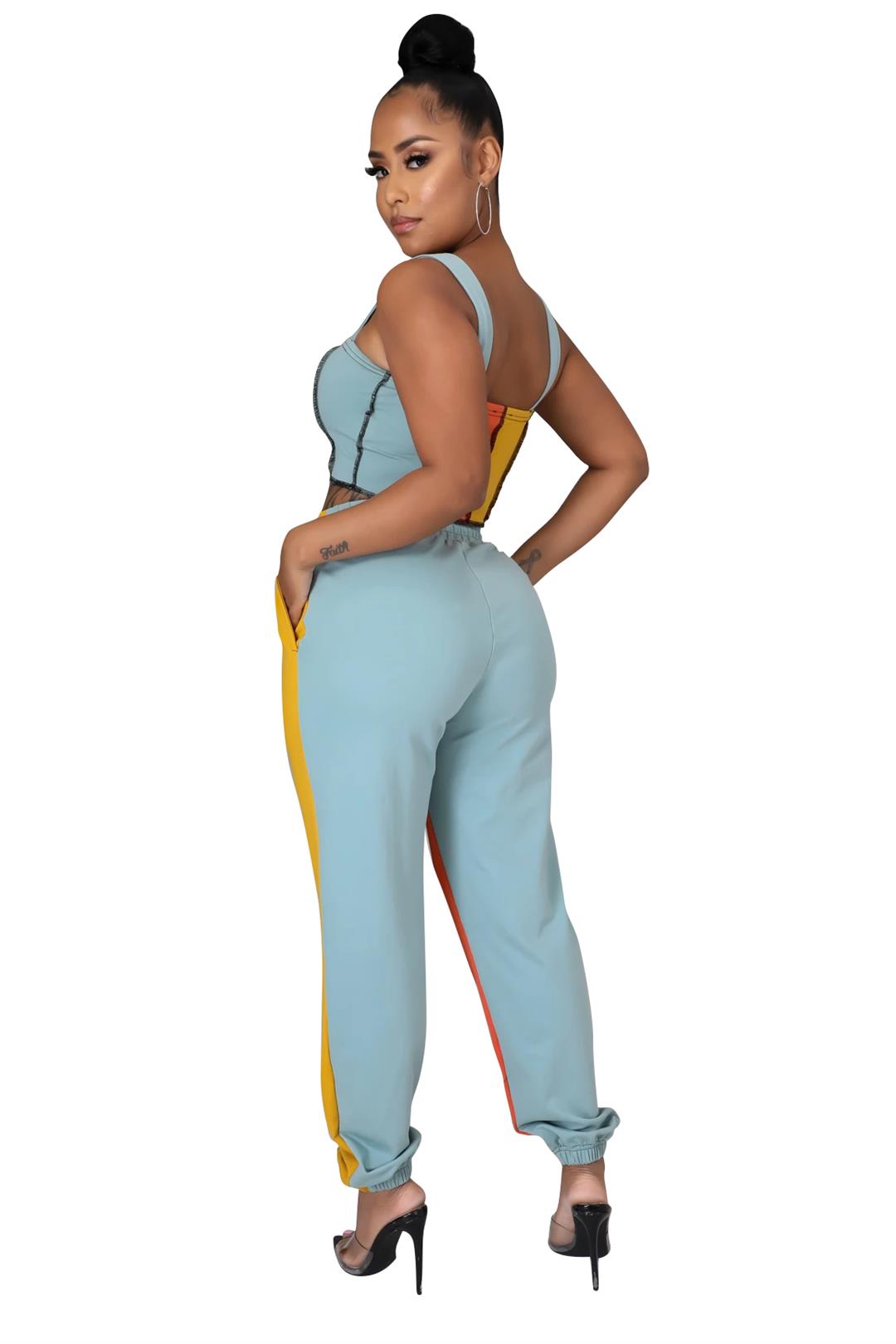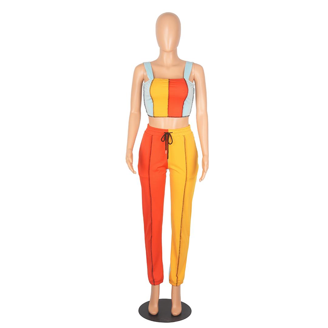 Orange Halter Boat-Neck 2PCS Women Fashion Jumpsuit