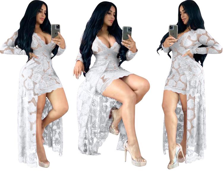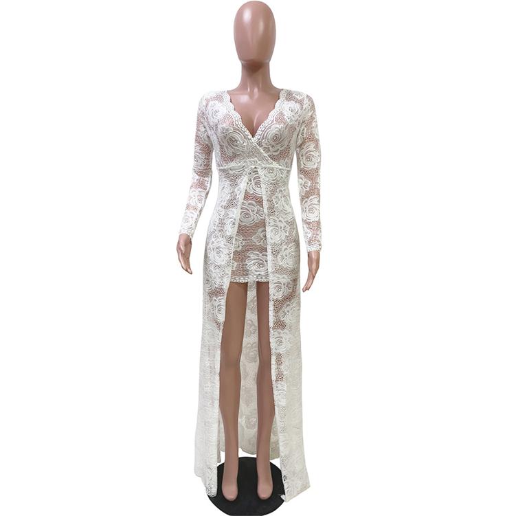 White Long Sleeve Lace Hollow-out Jumpsuit Maxi Dress