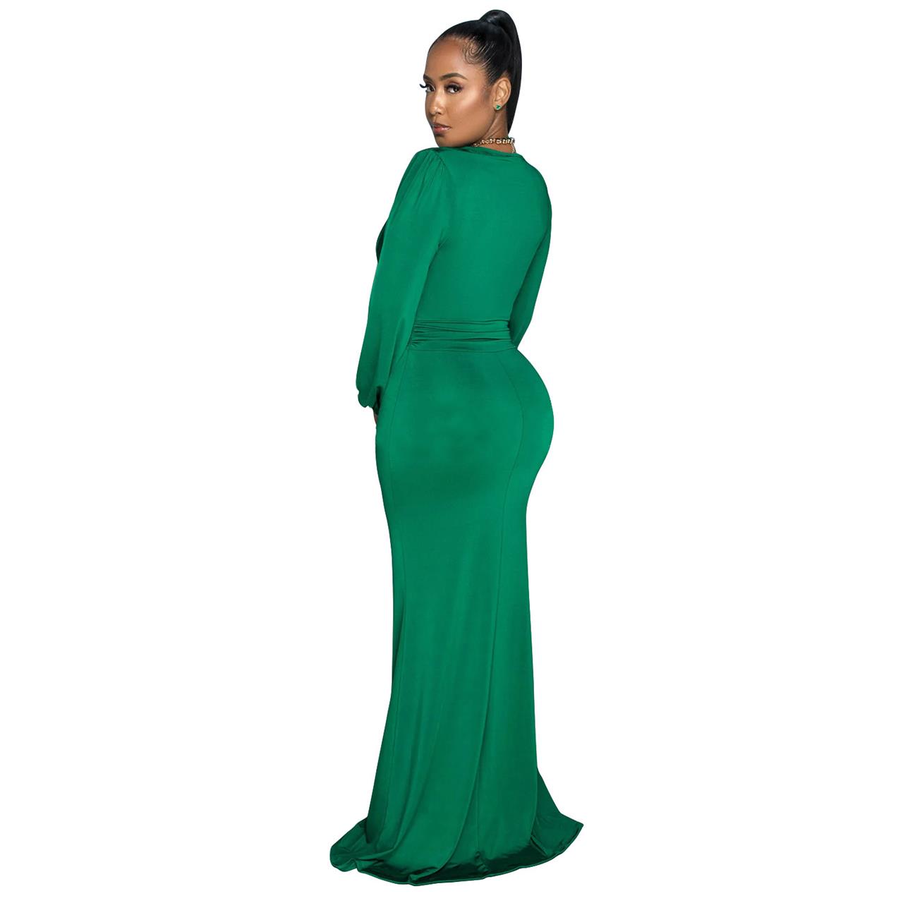 Green Women's Luxury Long Dress Pleated Deep V-Neck Formal Occasion Party Clothing