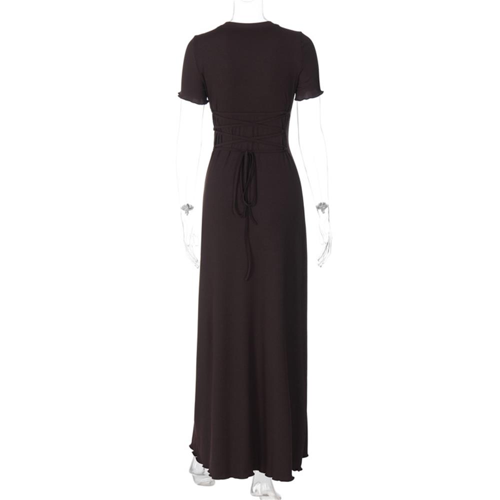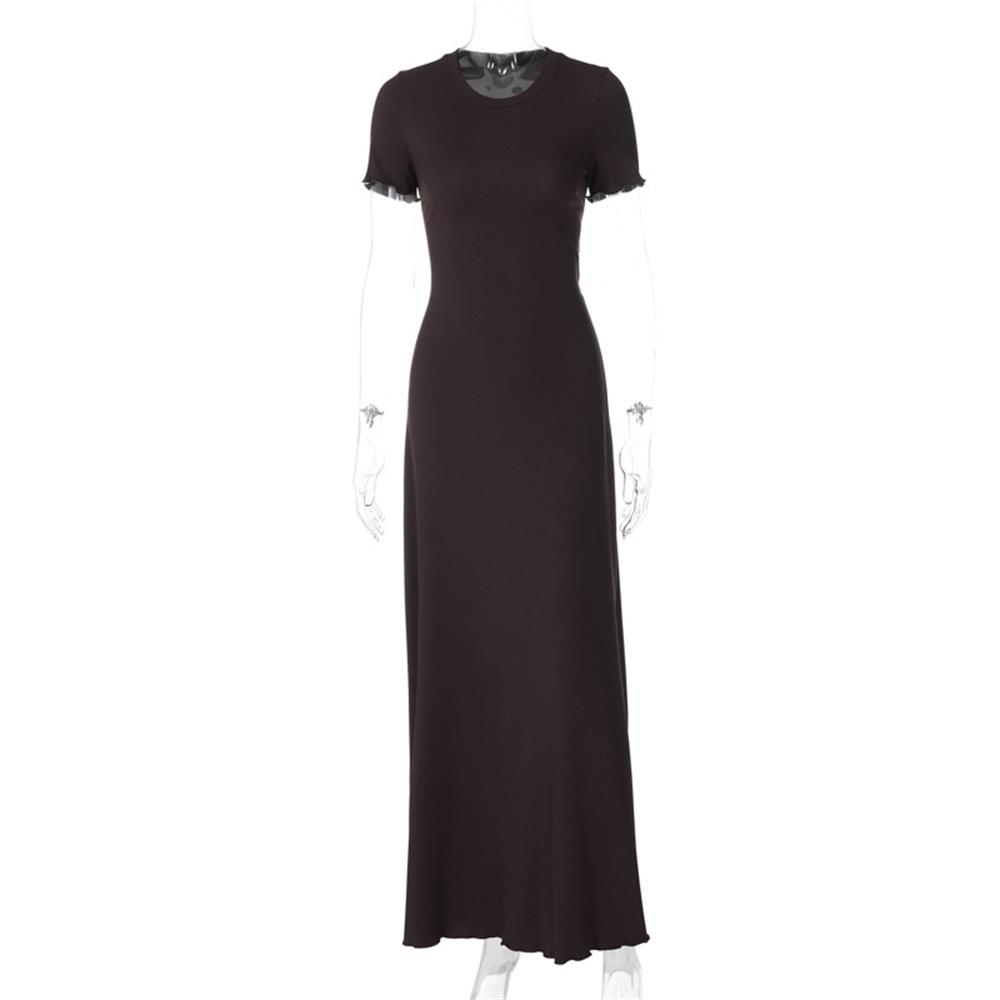 Black Short Sleeve Striped Pleated Women O Neck Prom Long Dress