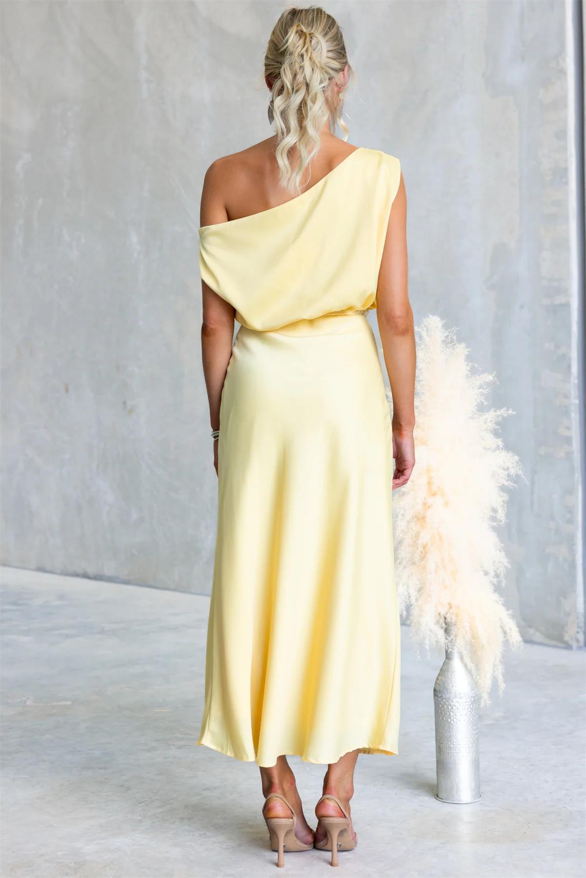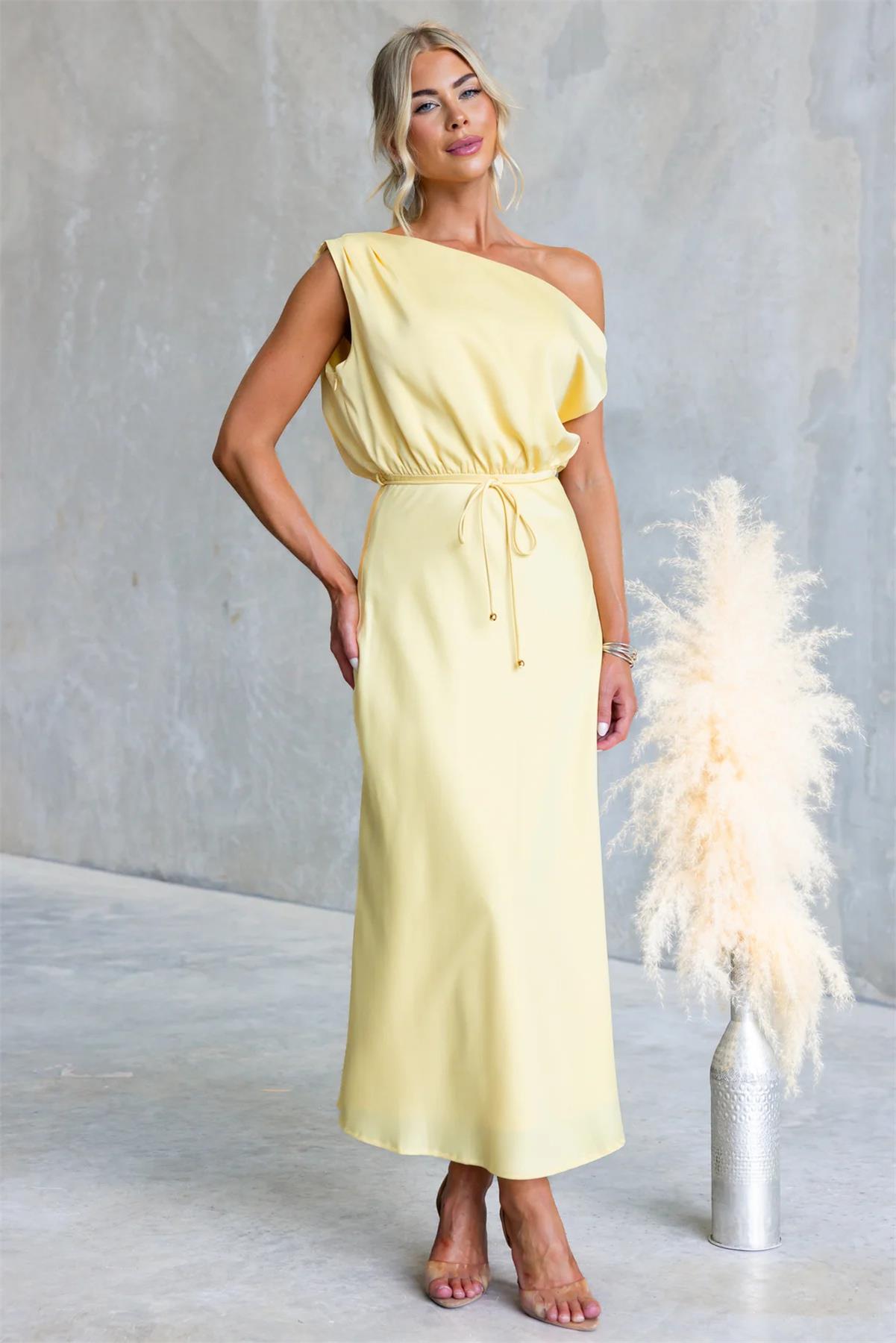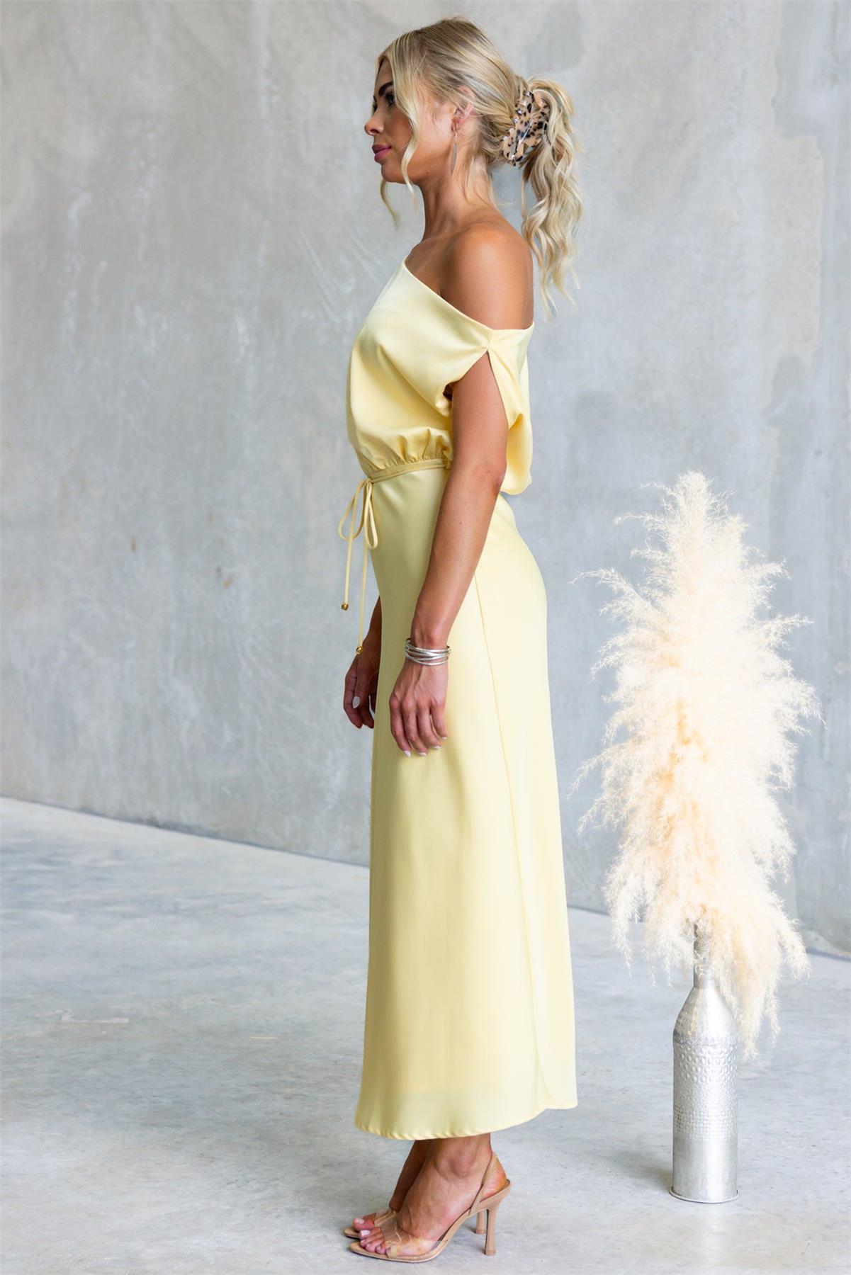 Yellow Off Shoulder Fashion Women Vacation Party Long Dress