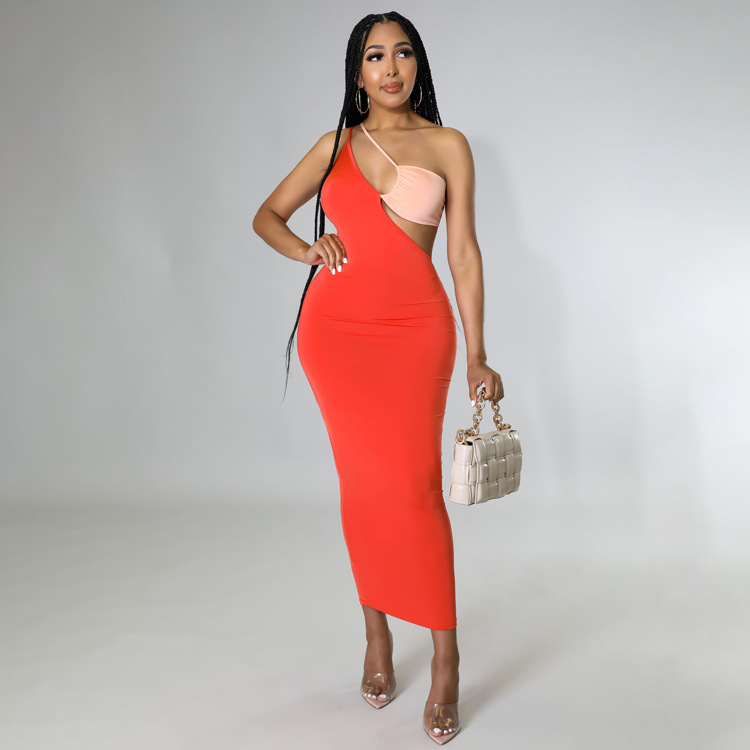 Red Sleeveless Halter Fashion Women Midi OL Dress