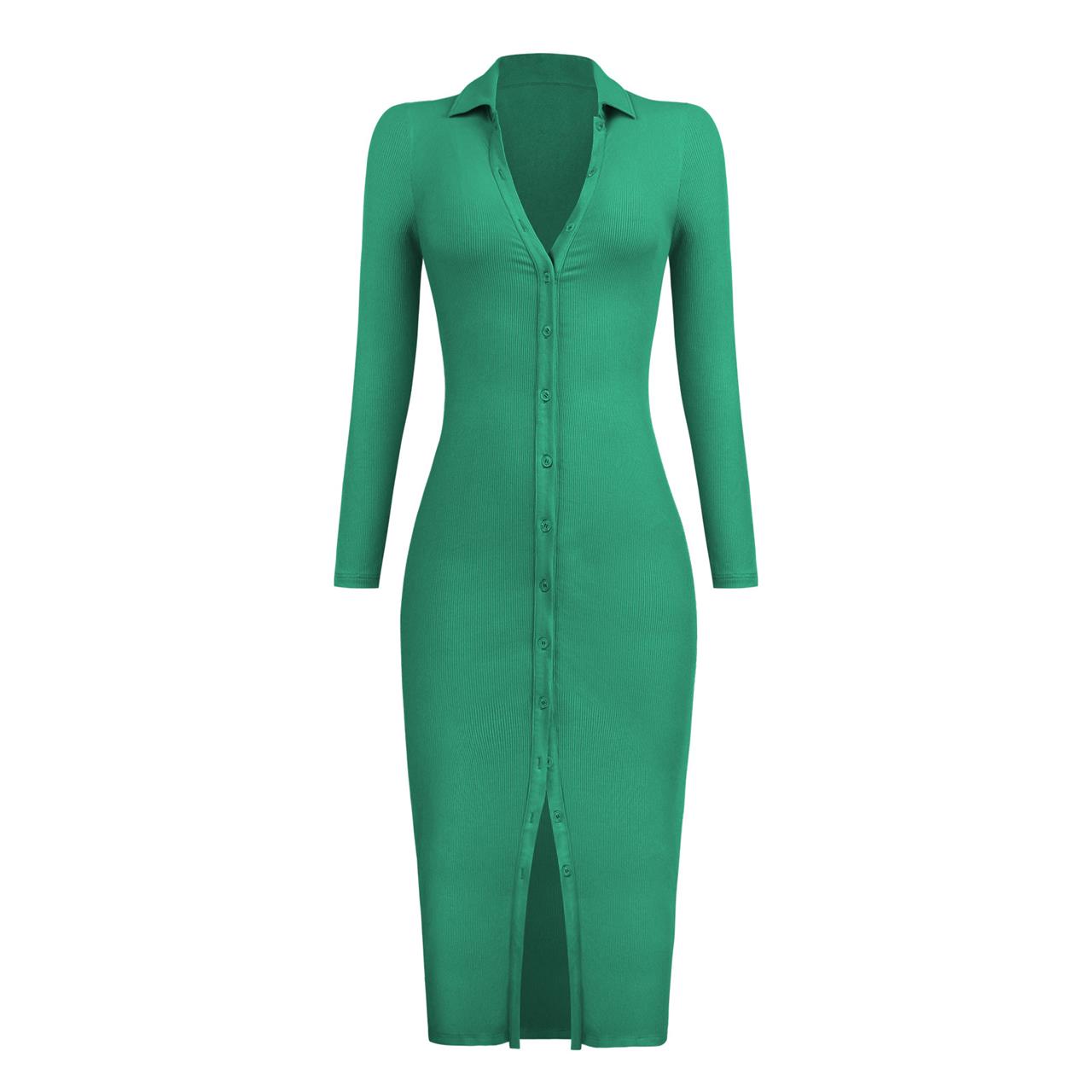 Green Women's Button Cardigan Ribbed Long Sleeve Slim Fit Prom Long Dress