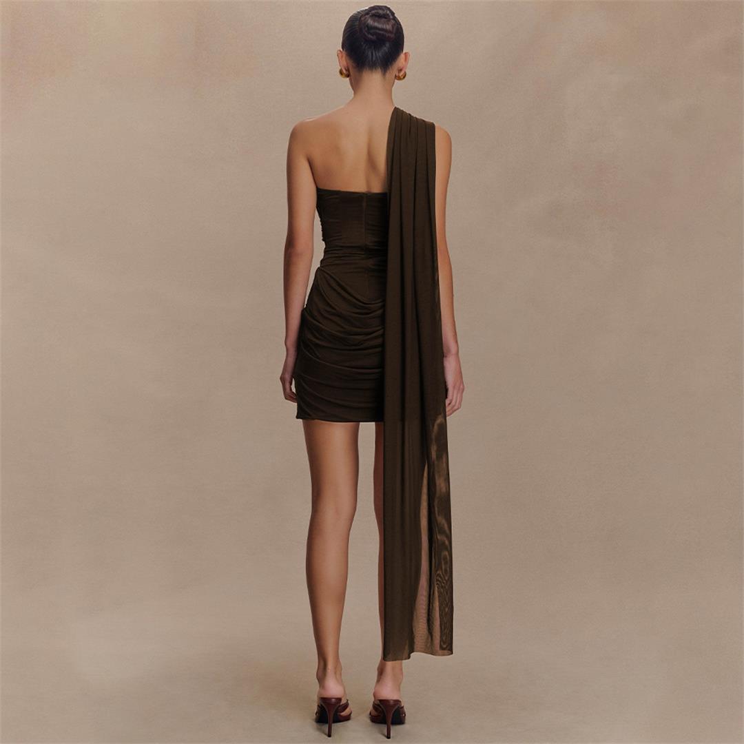 Sky Blue Off Shoulder Women Mesh Pleated Ribbon Bodycon Mini Dress
