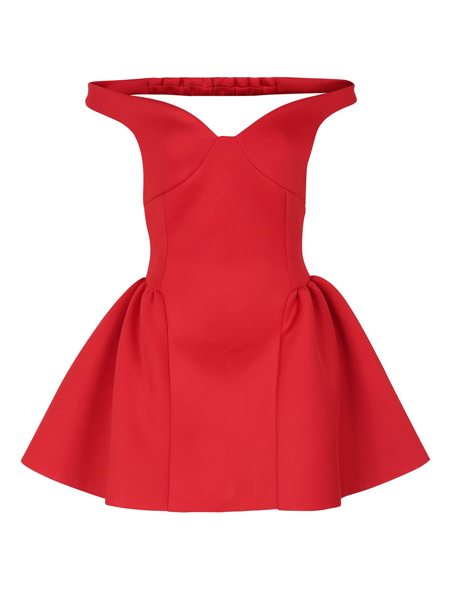 Red Off Shoulder Low Cut Summer Evening Party Puffy Short Skirt