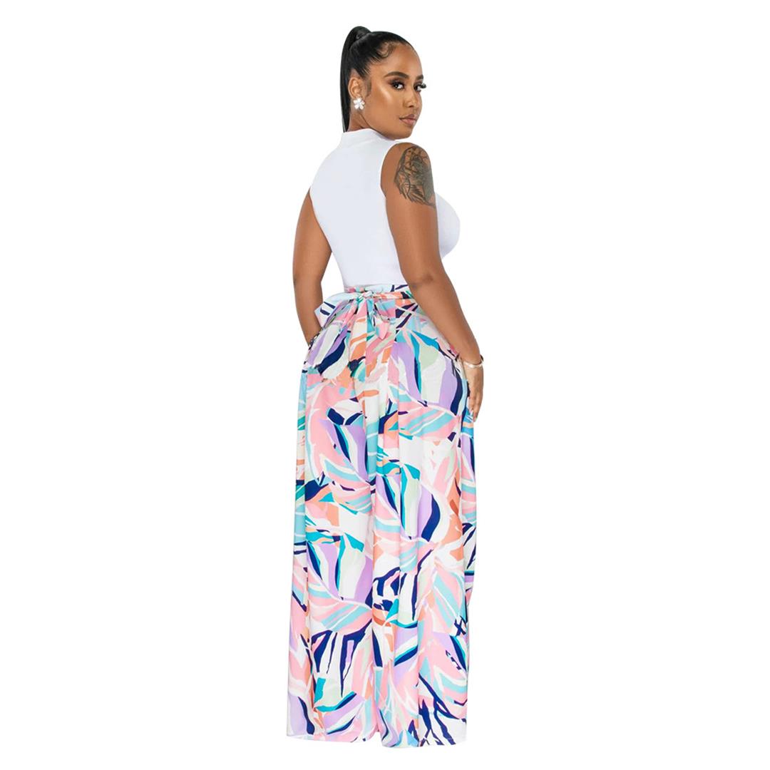 White Sleeveless Sexy Tops Printed Women Jumpsuit Dress