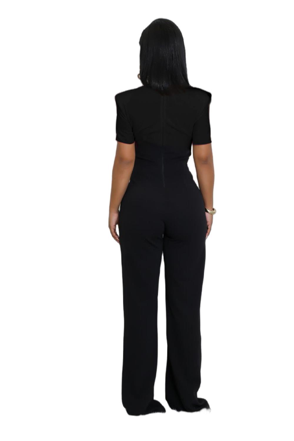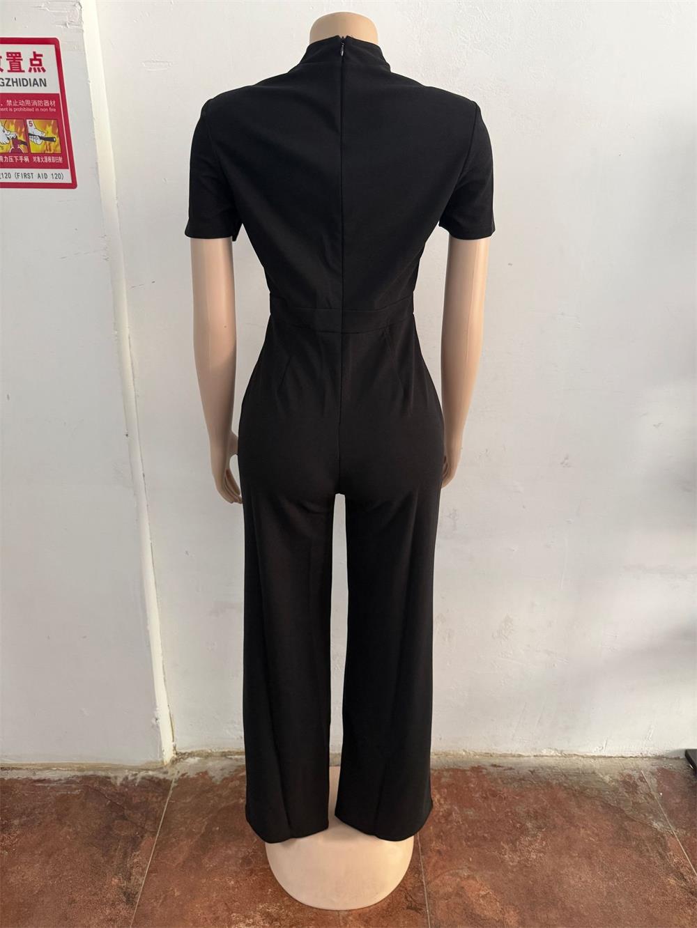 Black Short Sleeve Stripes V Neck Bodycon Women Party Sexy Jumpsuit