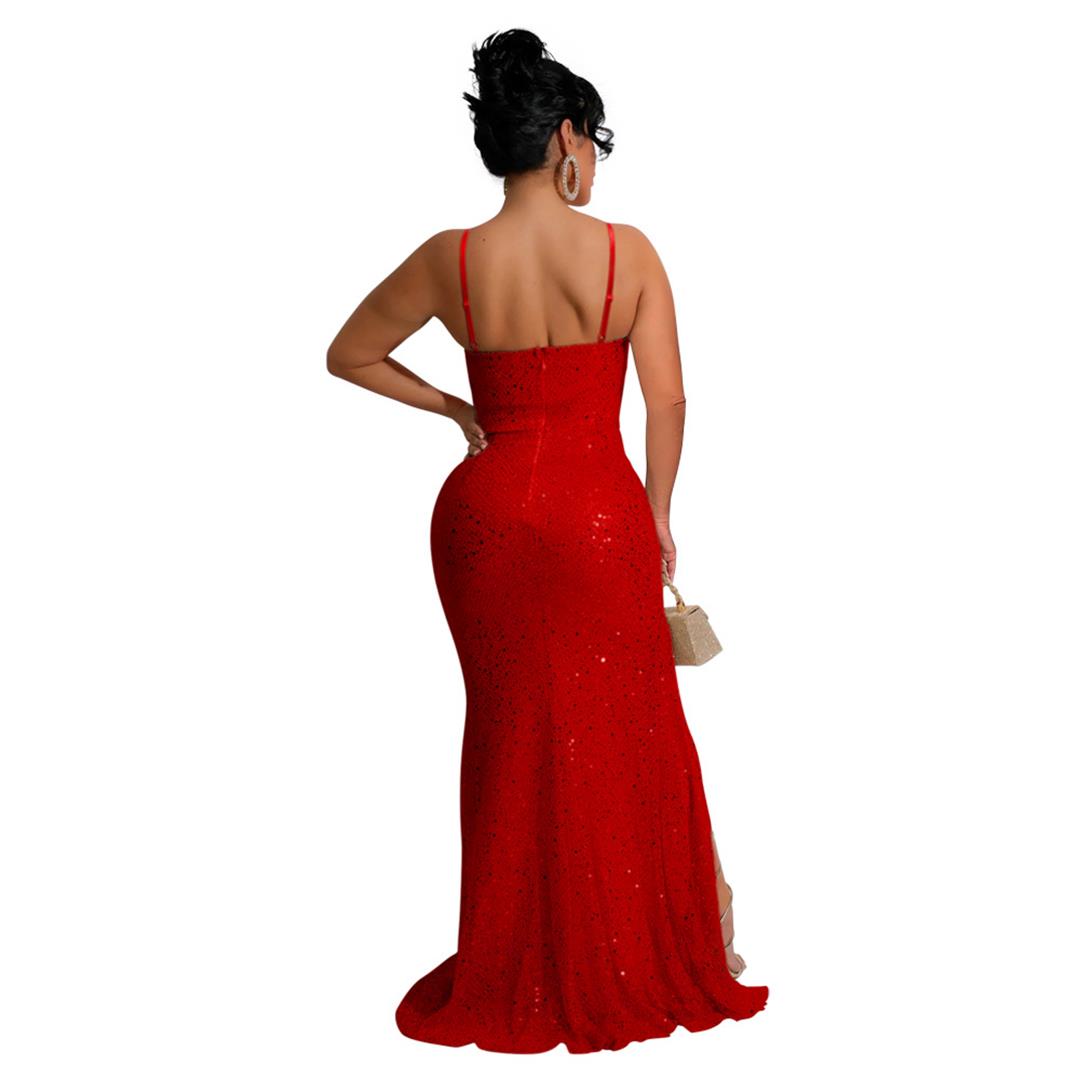 Red Elegant Sleeveless Straps Sequins Bodycon Evening Party Formal Dress